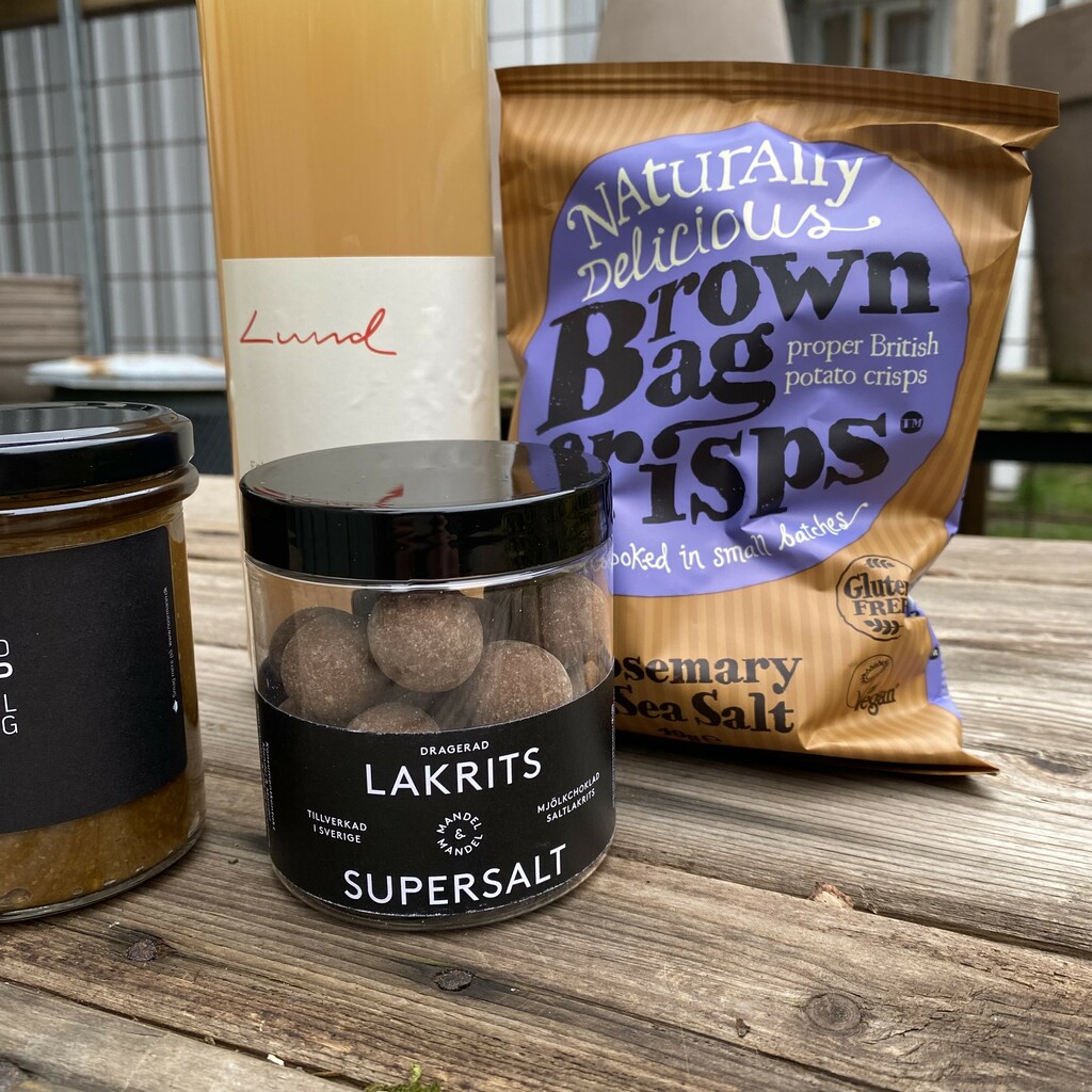 Vi tilbyr de lekreste matprodukter, som vi selv bruker og elsker. Disse kan vi varmt anbefale til en pappa som fortjener litt snadder! Gourmetgaven inneholder en pose chips, et kremmerhus med nydelig økologisk sjokolade, fantastisk god sennep (evt marmelade eller kompott dersom lageret tar slutt), og en flaske Lund eplemost, produsert på Nordre Bergan gård i Sandefjord. I den store gourmetgaven har vi lagt til enda et glass med noe godt (kompott/marmelade/pesto), og byttet ut kremmerhuset med en boks med lakris.